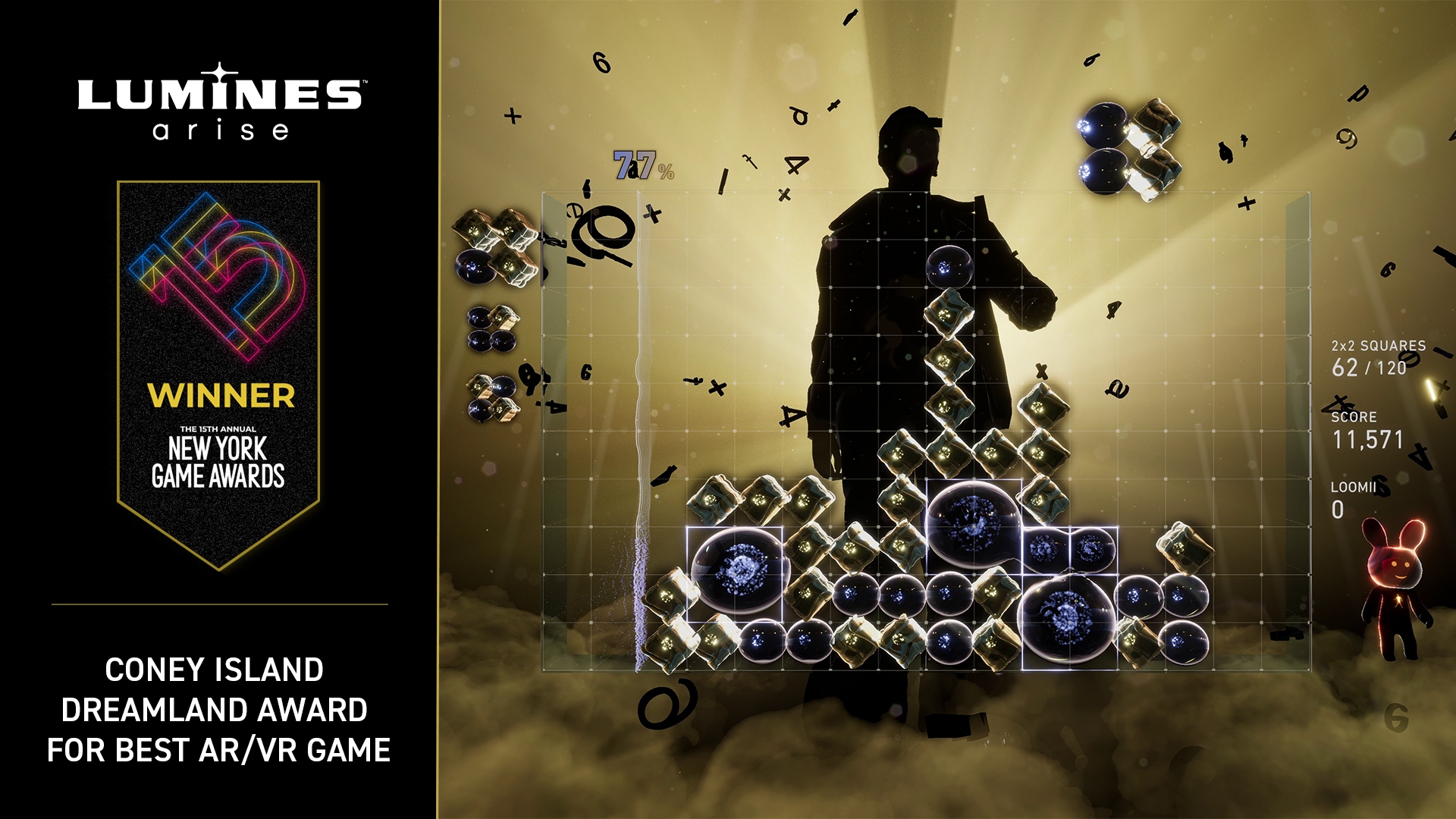 2026年1月19日(現地時間)、ニューヨークで開催された「第15回 ニューヨーク・ゲーム・アワード(New York Game Awards)」において、『Lumines Arise』が「Coney Island Dreamland Award for Best AR/VR Game(最優秀AR/VRゲーム賞)」を受賞したことをお知らせします。