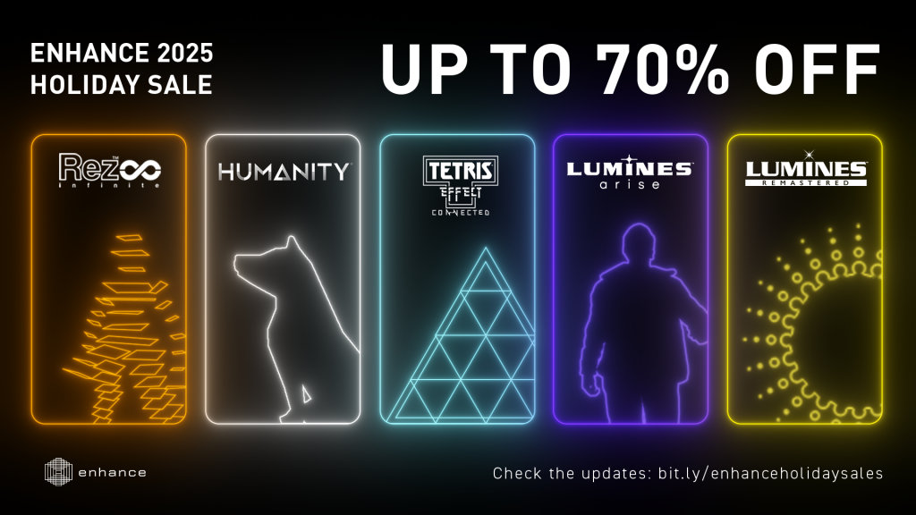 『HUMANITY』で柴犬にパズルステージを探索し、 『テトリス エフェクト・コネクテッド』で体験する息をのむほど革新的なソロ&対戦マルチプレイヤーを楽しむ、『Rez Infinite』で繰り広げられる視覚と音響とシューティングアクションのスリリングな旅、『ルミネス リマスター』の高エネルギーなブロック落下アクションまで、あらゆる方にお楽しみいただけます。